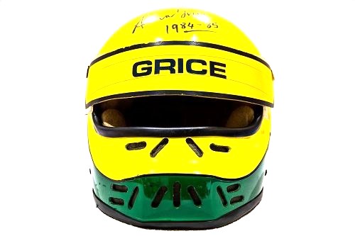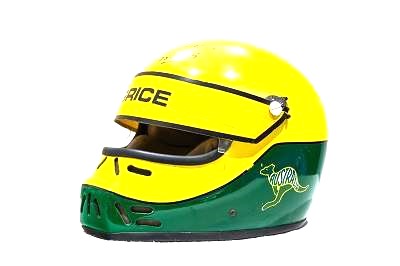 ALLAN WORE THIS HELMET WHILST DRIVING FOR THE ROADWAYS RACING TEAM IN 1984 AND 1985.